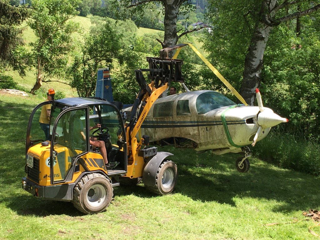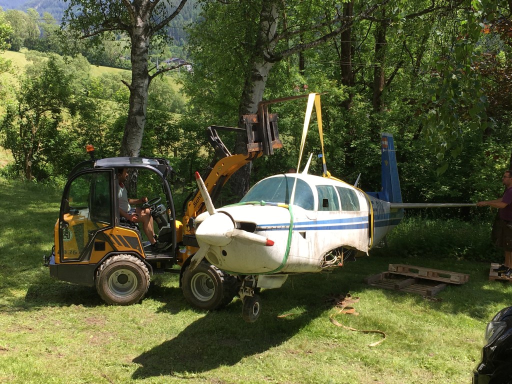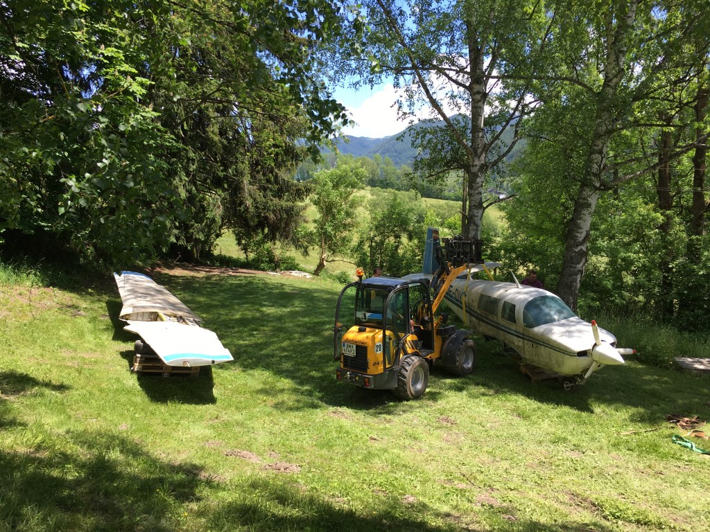 Aber nach mehreren Stunden, einigen Beinahe-Umkippern des Radladers und zahlreichen nicht jungendfreien Flüchen des Neo-Besitzers steht das Ding endlich dort, wo es hin soll. Jetzt nur noch ordentlich vom Moos befreien, das Interieur einbauen und dann kann es los gehen. Zum ersten Rundflug aufs Ölfeld nach Texas. Oder zumindest ins Marchfeld. Dort soll ja auch so manche Ölpumpe stehen.