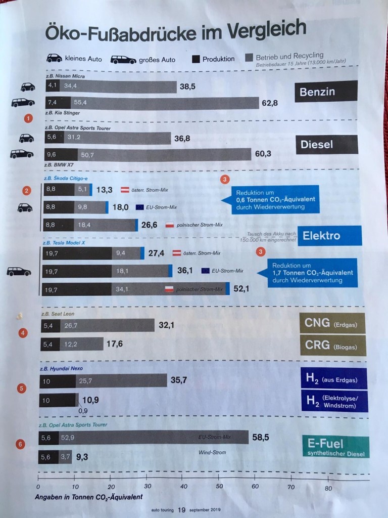 Und die Umwelt… Kann denn endlich mal jemand an die Umwelt denken?! Auch da sieht es nicht so übel aus. In den letzten Jahren gabs ja zahlreiche Studien und Experten-Meinungen, die dem Elektroauto eine ganz üble Umweltbilanz angedichtet haben. Es sei „schlimmer als der Diesel“ und der Untergang für die Atacama-Wüste. Mittlerweile sind die meisten dieser vermeintlichen Fakten widerlegt, einige Studienautoren haben sogar kleinlaut eingeräumt, dass ihre Studien schlicht falsch oder fremdbeeinflusst waren. Sachlich müssen wir festhalten, dass das Elektroauto sehr wohl umweltschonender ist als ein Benziner oder Diesel. Denn auch der Verbrennungsmotor braucht seltene Erden und die Herstellung wie auch der Transport von Benzin und Diesel sollten in die Umweltbilanz mit eingerechnet werden, um fair zu bleiben. Der ÖAMTC sieht das dann so: