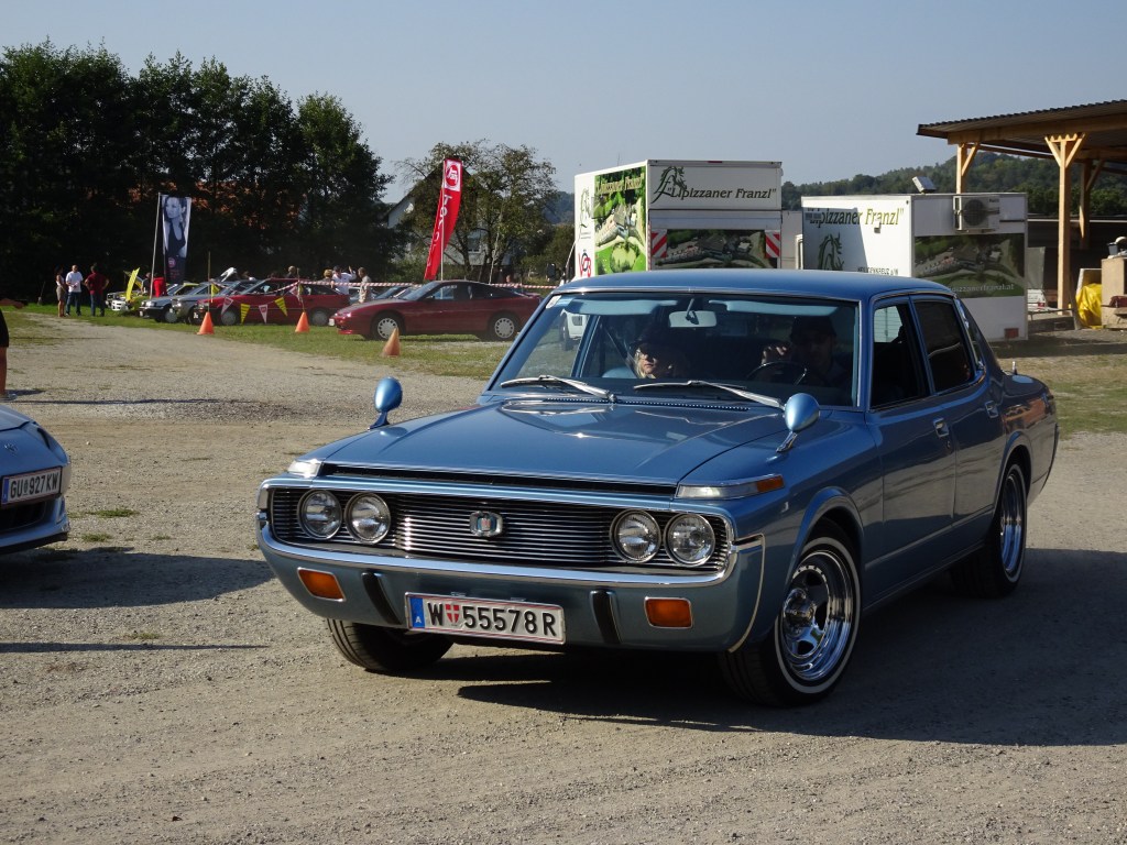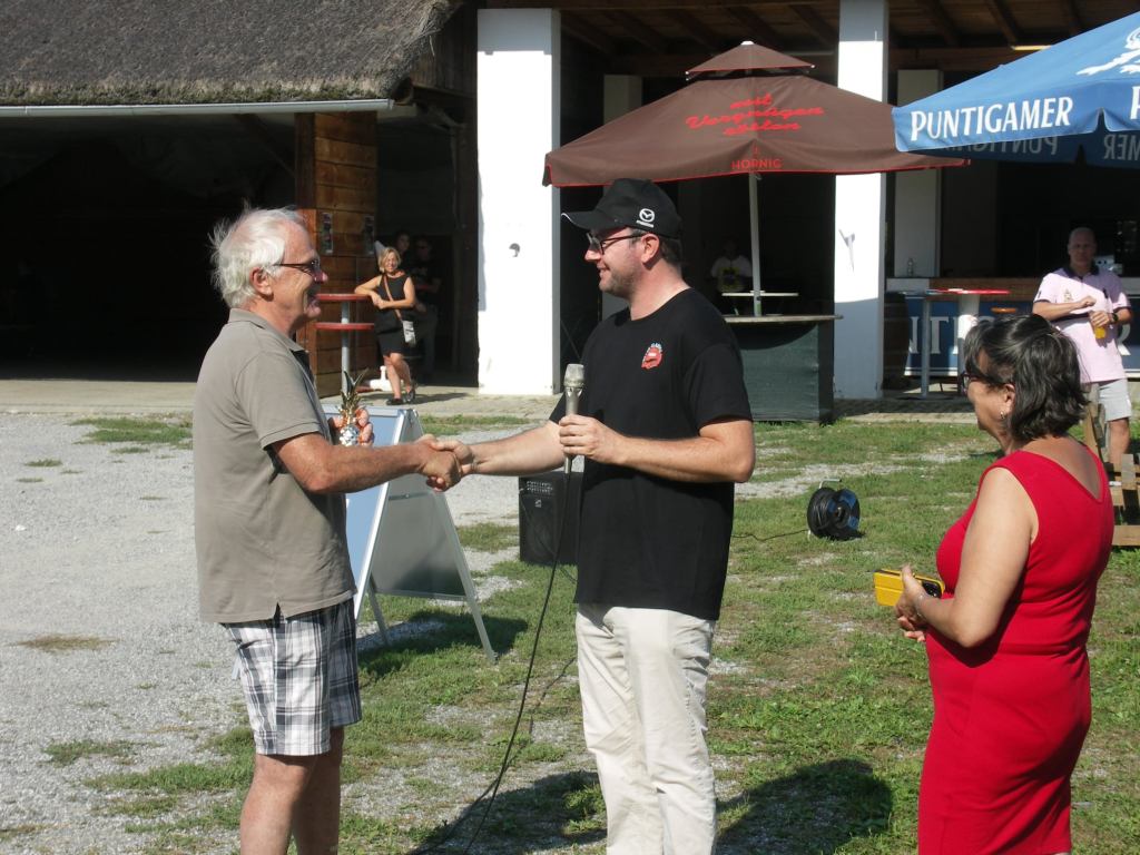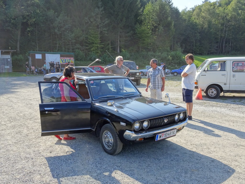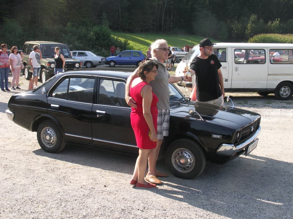 Ach ja, wer hat eigentlich die goldene Ananas für das rein subjektiv spannendste/coolste/speziellste/überraschendste Auto bekommen? Die ging heuer, ganz subjektiv von mir gekührt, an den sehr sympathischen Günter Heidich samt charmanter Gattin, die ihren ebenso sehr charmanten 1977er Daihatsu Charmant mitgebracht haben.