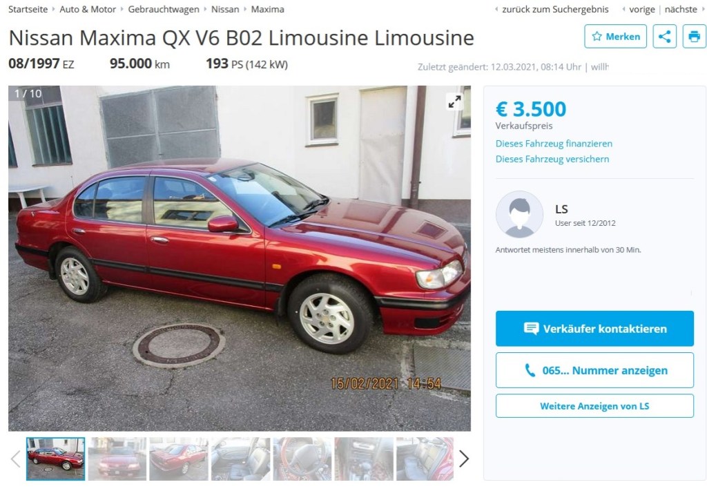 Wow, ein Maxima QX. Geil! Mit der großen 3-Liter-Maschine samt Automatik. Smooth! In einer sehr eleganten, völlig aus der Mode gekommenen Farbe. Verführerisch!