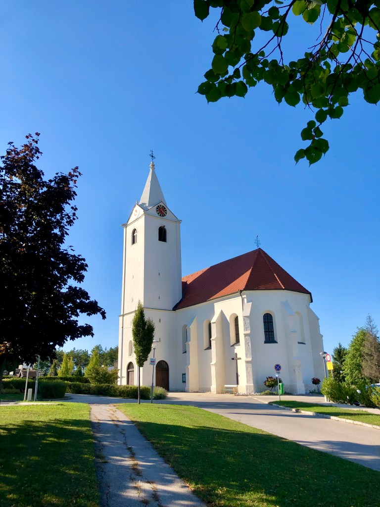 Die weiße Kirche dient mir als Dreh- und Angelpunkt für meine Erkundungstouren durch Steinbrunn. Durch einen Ort mit niedrigen Häusern und geschlossenen Rollläden entlang der Durchzugsstraße. Durch einen Ort mit alten Damen, die auf Bänken an der Straße sitzen und sich auf Burgenlandkroatisch unterhalten. Durch einen Ort, wo fast jeder Name am Postkastl auf „-its“ endet. Durch einen Ort, in dem alte Diesel-Mercedes immer noch erste Wahl sein dürften. Geparkt nicht in, sondern vor den Garagen. Damit man sie sieht.