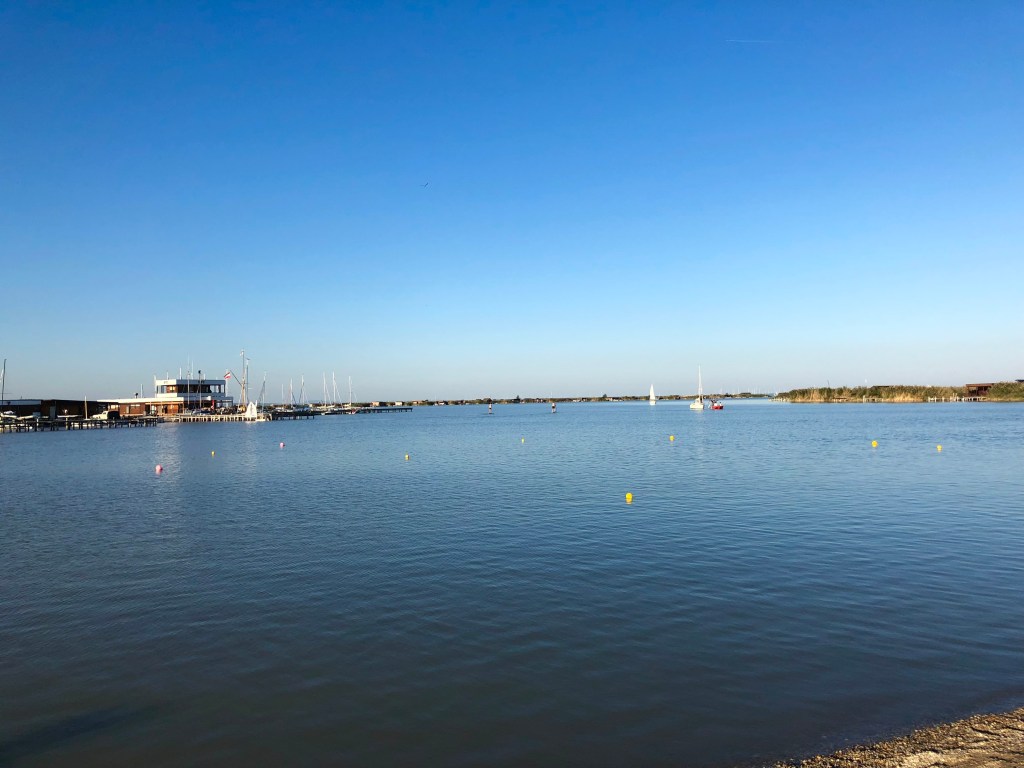 Zarte Wellen, leises Plätschern, das Geschrei der Möwen. Ein Segelboot legt sich sanft in den Wind, Ausflügler machen See-Selfies. Noch so ein Sehnsuchtsort und schon wieder spür ich´s. Die Energie, das Bauchgefühl. Die Kraft, die vom Wasser ausgeht. Die mich anzieht und die mir das Gefühl von Zuhause gibt. 140 Kilometer von meinem Wohnort entfernt. Weiter nach Mörbisch. Auf der wohl schönsten Bundesstraße Österreichs, der Ruster Straße B52. Mitten durch die Weinberge, die eigentlich sanfte Hügel sind. Mit wunderschönem Blick auf den See und hinein in die Ungarische Tiefebene. Spektakulär.