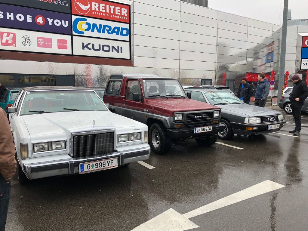 Dem Wetter entsprechend war die Zahl der Teilnehmer natürlich eher gering, die Autos mit Schwerpunkt auf Winter- und Alltagsbetrieb. Und doch ist sich eine schöne Bandbreite an Kisten ausgegangen. Vom Lincoln Towncar bis zum VW Polo, vom Audi 200 Turbo Quattro bis zum Mazda 121.