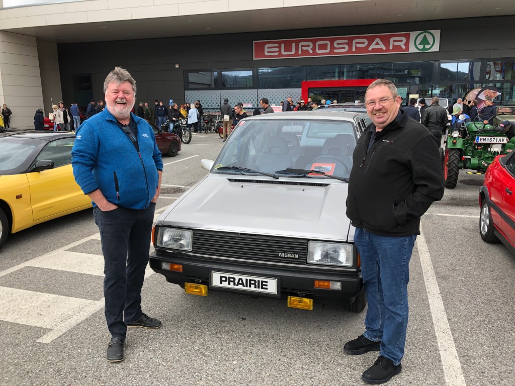 Besonders gefreut hat mich natürlich, dass mein 85er Prairie wie immer für großes Interesse gesorgt hat. Zwei ehemalige Nissan-Mechaniker haben sich sehr gefreut, nach langer Zeit wieder einen Prairie zu sehen. Siehe Foto unten. Zahlreichen Teilnehmern und Besuchern durfte ich die Partytricks des skurrilen Van-Pioniers zeigen und im Endeffekt war der Prairie eines der meistdiskutierten und meistbestaunten Fahrzeuge am Platz.