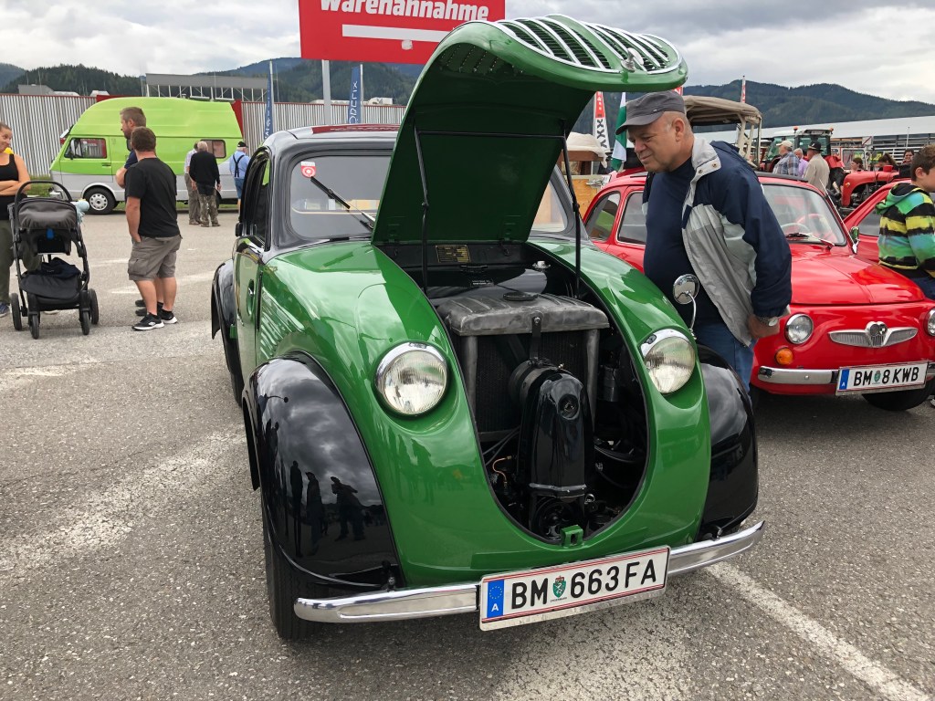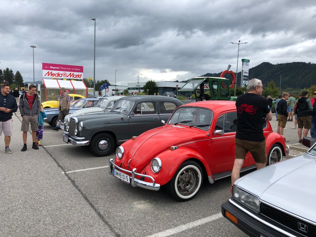 Wer beim „großen“ Wurmerl-Treffen im August erst um 9 Uhr am Platz ist, bekommt kaum noch einen Parkplatz, geschweige denn eine Startnummer. So war´s zumindest bisher immer. Doch heuer – leicht genug Platz, freie Parkplätze, relativ wenig Leute. Hm, komisch.