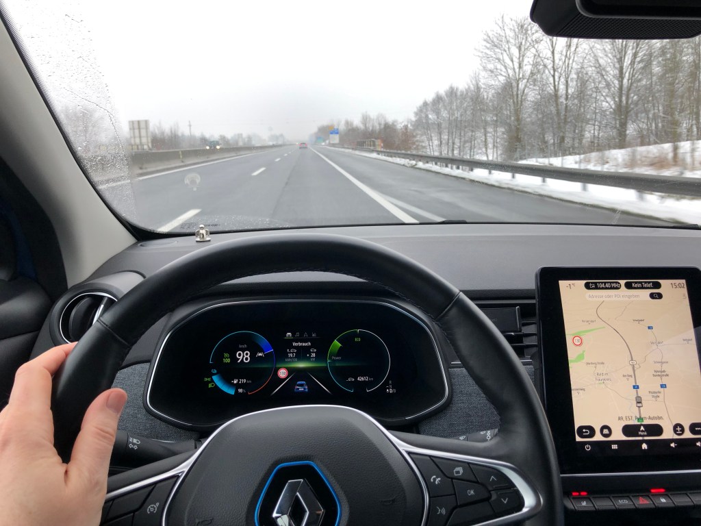 Aufgrund der Jahreszeit werden wohl zwei Ladestopps nötig. Sind dauerhafte Minusgrade und viele Autobahnkilometer doch die schlechtesten Bedingungen für einen Akku. Und so waren trotz 52kW Fassungsvermögen nur knapp 200km drin. Bei freundlicheren Temperaturen sind das auch real knapp 150km mehr.