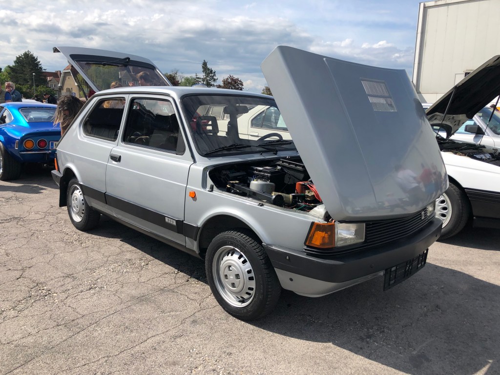 Ein italienisches Auto, nur 3 Jahre lang in Spanien gebaut, verkauft von einem netten Herrn aus Ungarn. Mit milden 47 PS aus 900 Kubik. Aber mit 4 minikleinen Zylindern. In einem Zustand, der beachtlich ist. Ein weiterentwickelter Lizenzbau des Fiat 127 für Leute, denen der Panda zu klobig war. Fura bedeutet auf ungarisch übrigens „eigenartig“, hat er mir erzählt. Passt perfekt, würd ich sagen.