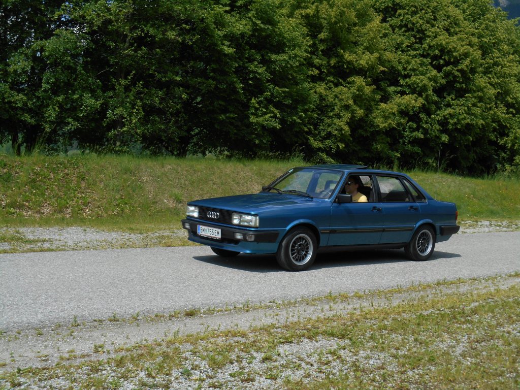 Der legendäre Fünfzylinder im Audi 80 brabbelt, röhrt, blubbert und schnurrt, dass es eine Freude ist. Ein Sound zum Niederknieen. Könnte man als Tonträger verkaufen. Und sonst so? Das Ding wirkt absolut nicht wie ein 40 Jahre alter Oldie. Fährt richtig gut, flott und sicher, wie ein modernes Auto. Bequeme Sitze, straff und mit Seitenhalt. Ein souveräner Oldtimer, der vollkommen alltags- und reisetauglich ist. Und das in Verbindung mit diesem Sound. Schon schön!