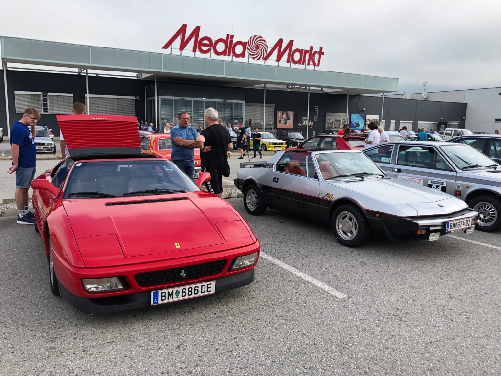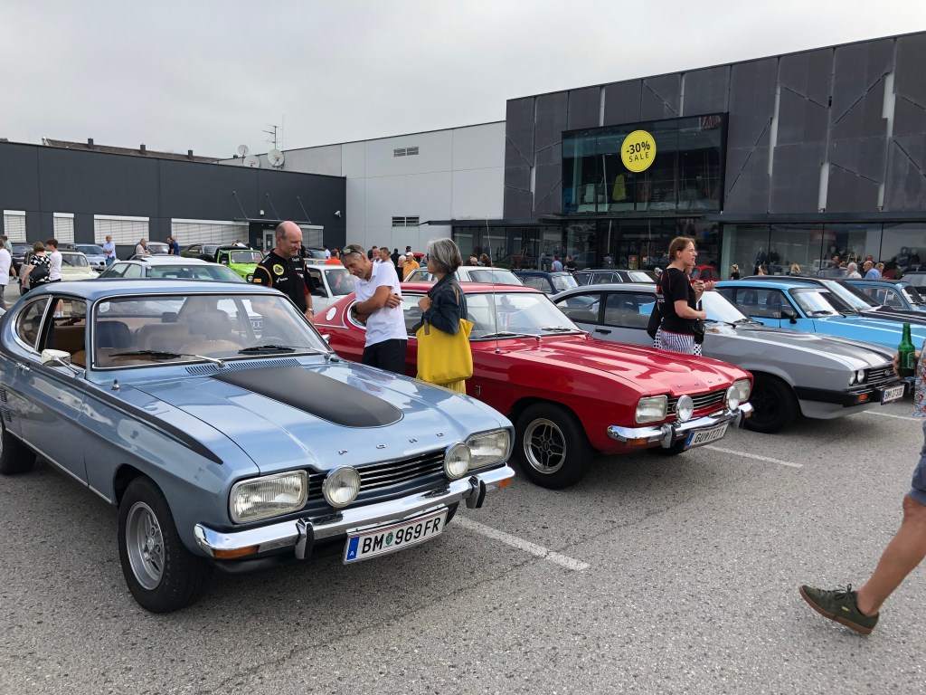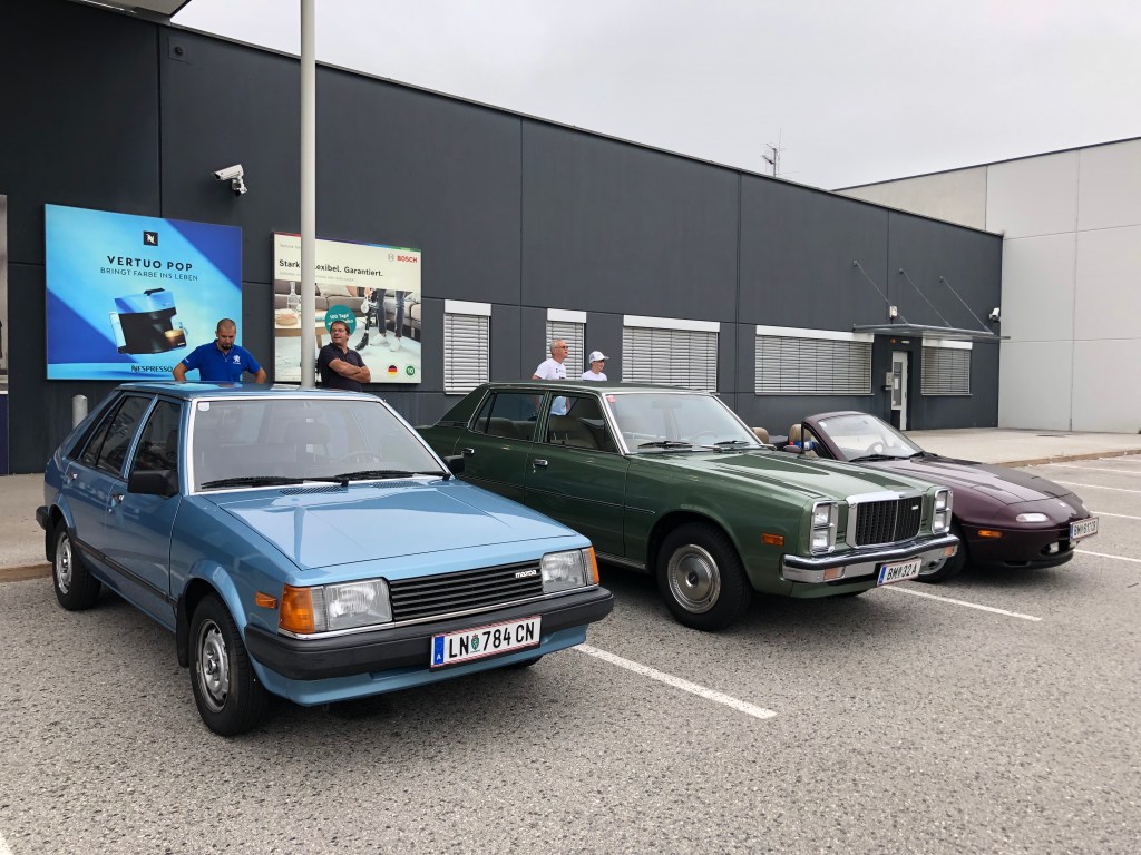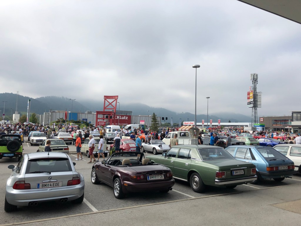 Und dann gehts zur Ausfahrt auf die Festwiese. Zur zünftigen Zeltfest-Gaudi. Da ich heute ohne Familie unterwegs war, hab ich mir das aber gespart und hab beschlossen, mich als Beifahrer einem Freund anzuschließen, der mit seinem Audi 80 quattro noch zwei Treffen im Westen von Graz abklappern möchte. Einen Mazda 323 können wir auch noch gewinnen, uns zu begleiten. Navi gestartet, los gehts nach Tobelbad!