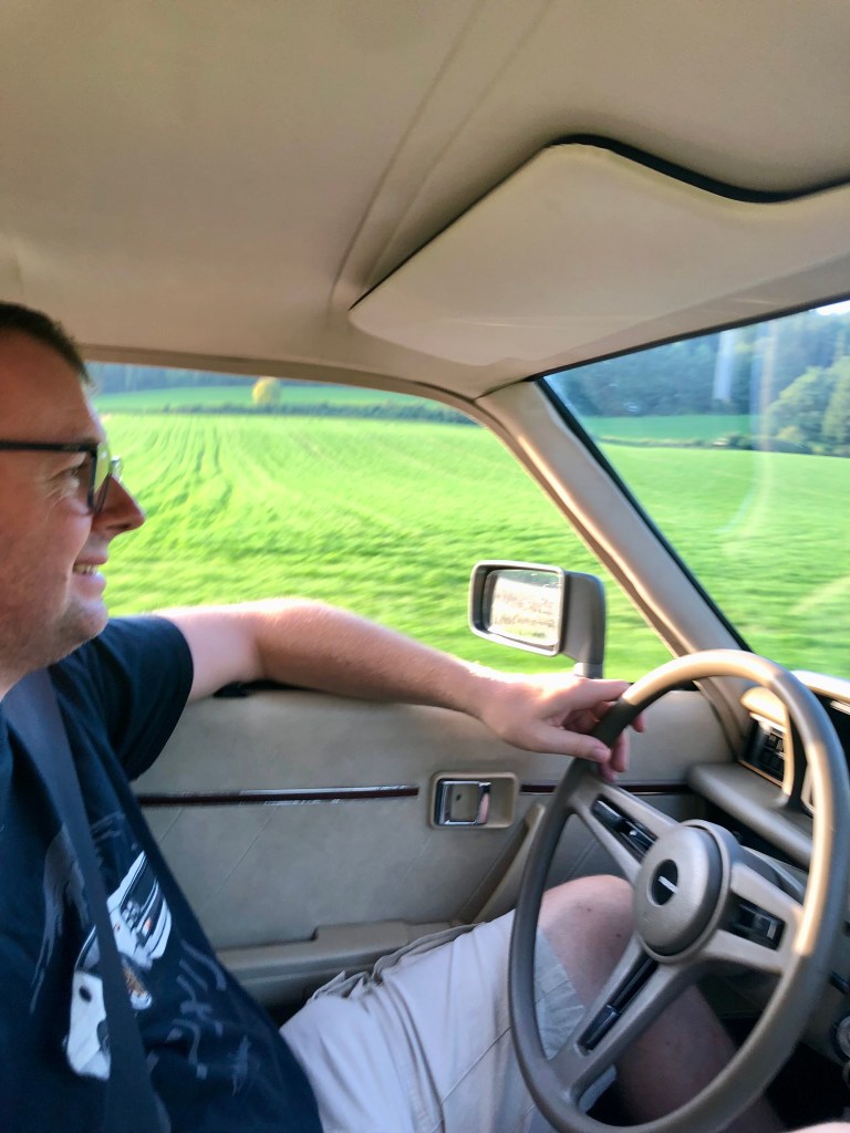 Die Abendsonne scheint mir direkt ins Herz. Die grüne Badewanne läuft richtig gut. Auch sie freut sich über den schönen Abend. Über den Geruch nach Sommer. Über den warmen Asphalt unter den Rädern. Und darüber, dass nach langen Jahren des Stillstands endlich wieder Leben in der Kiste ist. Eine Handbreit Luft unterm Differential, die einsame Landstraße vor dem Kühler und den Fuß am Gas. Frei sein.