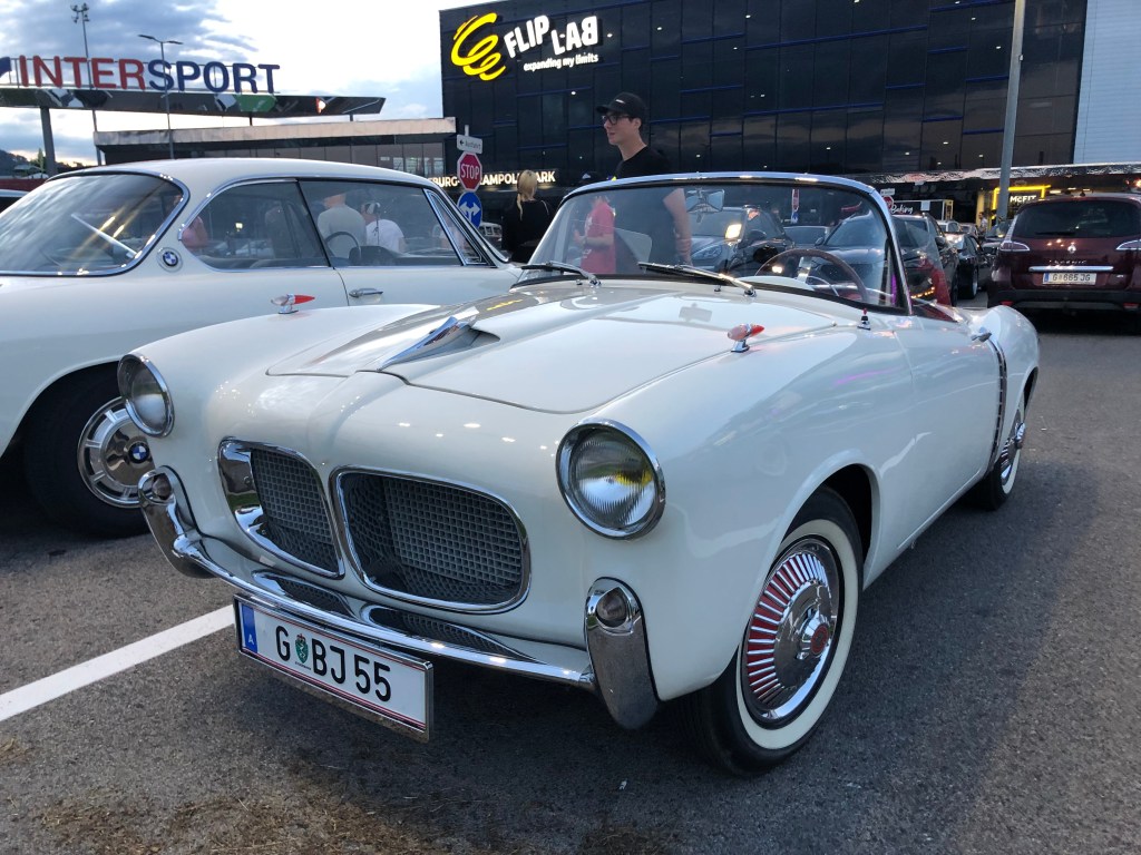 Und so bin ich wieder um mein Abendessen im Sägewerk-Bausatz-Lokal umgefallen. Warum? Ich hab einfach keine Zeit. Ein ständiges Kommen und Gehen sorgt für immer wieder andere, interessante, faszinierende und grandiose Autos. Die muss man alle sehen, viele hören, manche spüren. Mit den Besitzern reden natürlich auch. Das eigene Auto muss auch gezeigt, erklärt und vorgeführt werden und schon ist so ein Abend um.