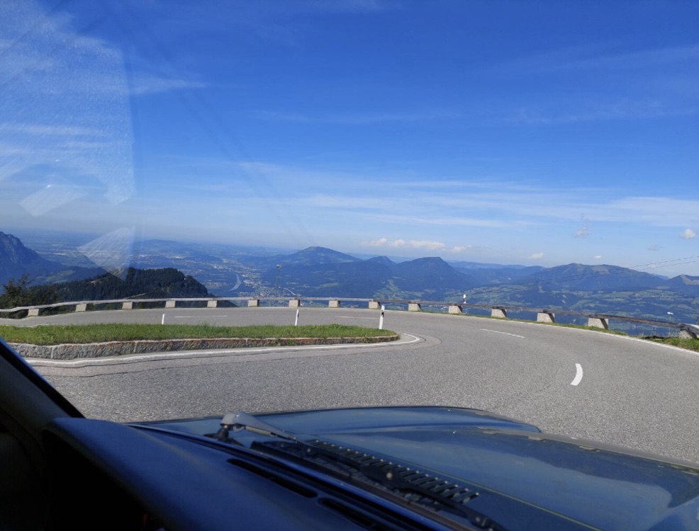 Zwischenzeitlich schießen einem Gedanken wie „Hätte man das nicht auch irgendwo im Tal machen können?“ in den Kopf. Vor allem dann, wenns grad wieder bei über 20% Steigung im ersten Gang durch Kehren geht und der betagte Gebrauchtwagen ganz schön schwitzen muss, um sich an Obersalzberg vorbei hinauf zu kämpfen. Aber oben angekommen, entschädigt nicht nur das Panorama. Einen schöneren Platz für einen würdigen Abschluss des dreizehnten NipponClassics in Bayern hätte es wohl nicht gegeben.