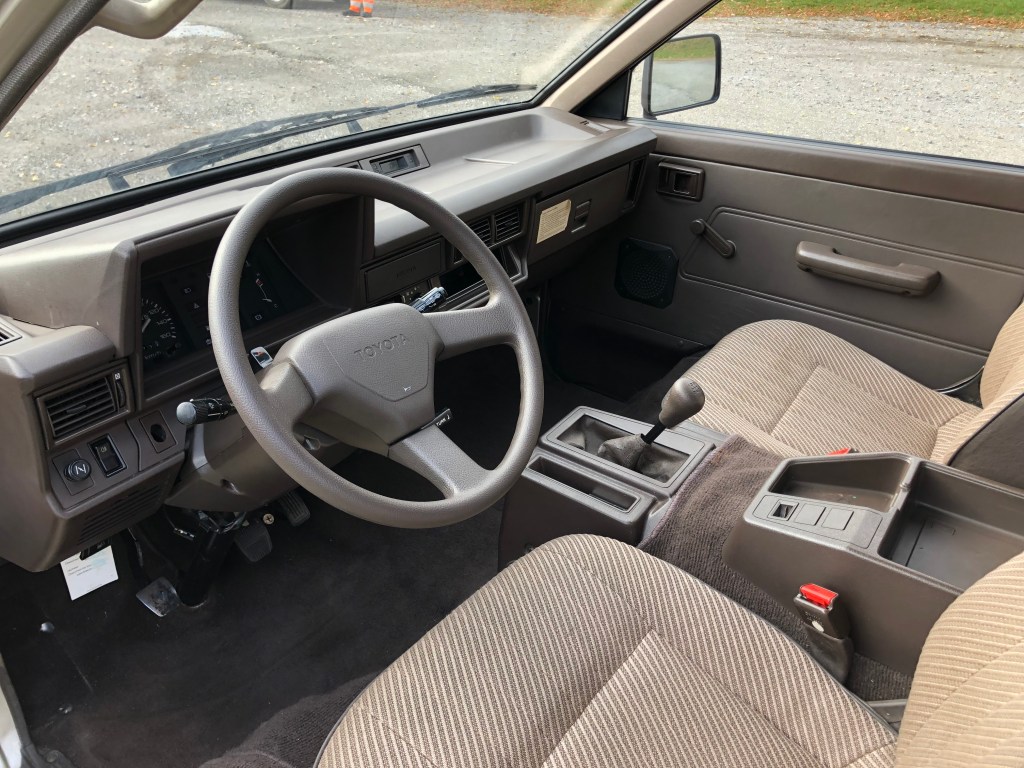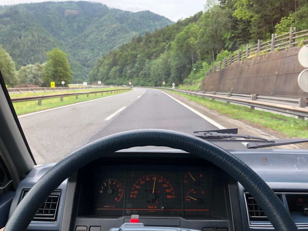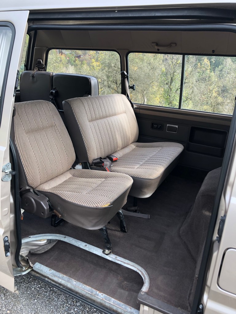 Dem Lite-Ace KM30 hingegen merkst du sofort an, dass er ein Nutzfahrzeug ist, dem man Sitze reingeschraubt hat. Aber davon gleich acht Stück. Wobei, eigentlich sieben, bloß in der letzten Reihe darf ein achter Passagier in der Besucherritze sitzen. Selbst bei voller Bestuhlung bleibt ein Kofferraum übrig. Was bemerkenswert ist, denn der Würfel ist keine vier Meter lang. Dass er nur eine Schiebetür auf der rechten Seite hat, ist nicht nur im Alltag unpraktisch. Und leider hat Toyota sich nicht die Mühe gemacht, auch in Europa Versionen mit variablem Innenraum zu verkaufen. Herausnehmbare, drehbare oder anderweitig smarte Sitze? Fehlanzeige. Und nur 2 (!) Kopfstützen bei 8 Sitzen. Auch 1990 war das zu wenig. Keine Ablage in der Schiebetür, nur ein Fach in der Fahrertür.