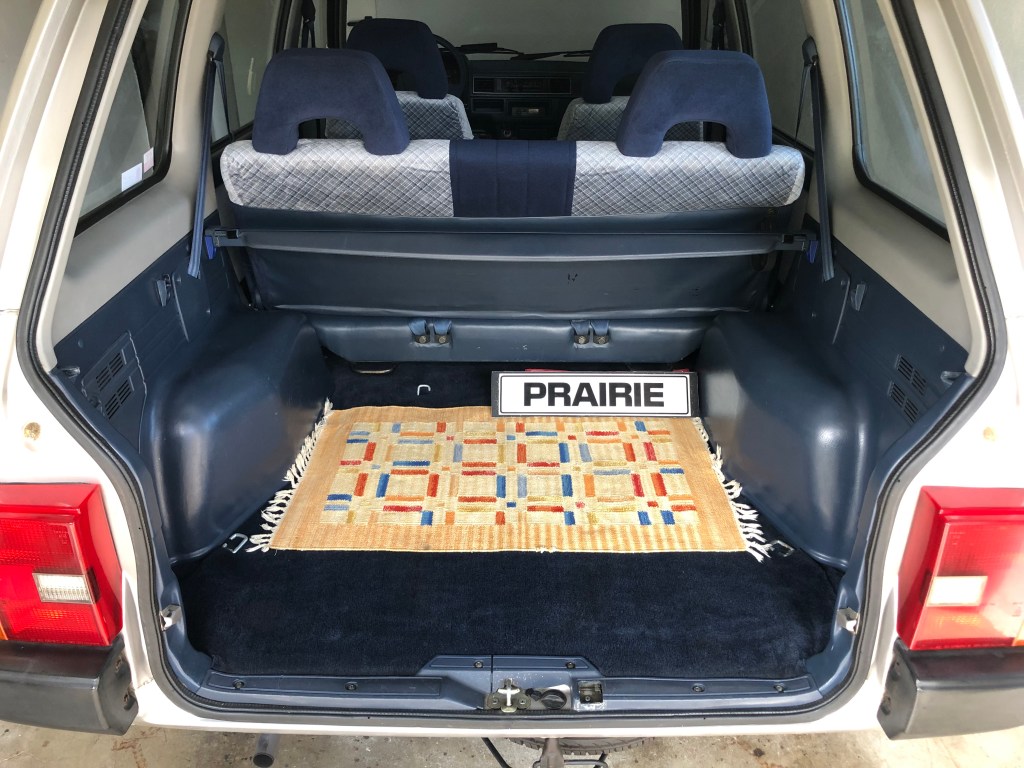 Der Prairie M10 ist das smarte Familienauto. Mit viel Platz für vier Erwachsene, die auch ordentlich Gepäck mit auf Reisen nehmen können. Zwei Schiebetüren machen ihn zum König enger Supermarktparkplätze und die fehlenden B-Säulen erleichtern nicht nur das Handling von Kindersitzen. Auch die Oma entsteigt dem „Großraum-Sunny“ würdevoll. In die andere Richtung gehts fast noch besser. Beim Einsteigen erinnert er an einen heute so modischen Crossover. Die etwas höhere Sitzposition, weit öffnende Türen und bequeme Sitze sorgen für Wohlbefinden, noch bevor der Motor läuft. Vier höhenverstellbare Kopfstützen serienmäßig, ab 1983! Ablagefächer in den Schiebetüren, aufklappbare Armlehnen vorne.