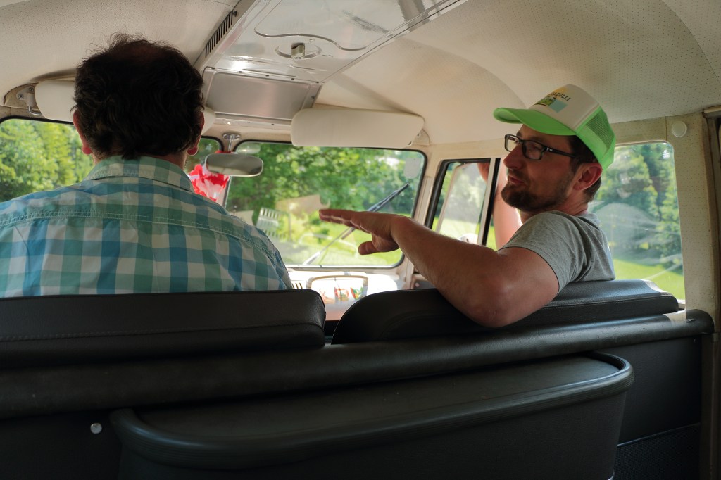 - Ist es das Raumgefühl? Kommt wohl drauf an. Kaum einer kauft sich einen Oldtimer-Bus, um damit regelmäßig richtig viel zu transportieren. Also kommt es eher auf die Innenausstattung an. Bequeme Sitze mit Armlehnen, drehbar und klappbar. Mit einem aufklappbaren Tischerl für Reihe 2 und 3. Ein Kühlschrank in der Mittelarmlehne, ein Panoramadach. Wenn es dann aber nur eine nackte, fest verschraubte Bank und drei Klapphocker sind, kommt eher Baustellenfeeling auf. Selbstkasteiung statt Freizeitspaß.