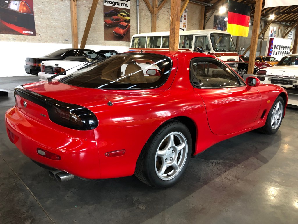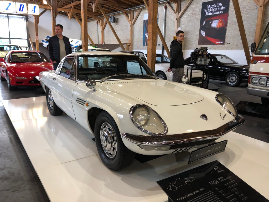 Auf dem Bankerl vom Felix Wankel sitzend, beeindruckt vom erstklassigen Zustand des griechischen RX-9 und mit Blick auf die anderen Wankel-Pretiosen, wird dir dann bewusst, welches Glück wir haben. Nicht nur, weil wir all das erleben dürfen. Sondern auch, dass die weltweit größte zugängliche Sammlung an Mazda-Klassikern in Augsburg zuhause ist, nicht in Hiroshima oder in Bogotá.