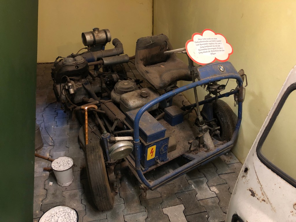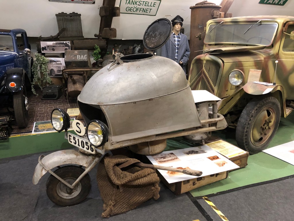 Wo sieht man schon einen Holzkohle-Gasgeneratoranhänger oder das originale Schnittmodell des Audi 4,2 Liter V8-Motors von Pariser Autosalon? Und eine Isetta, umgebaut zum Rasenmäher, ist auch einen zweiten Blick wert.