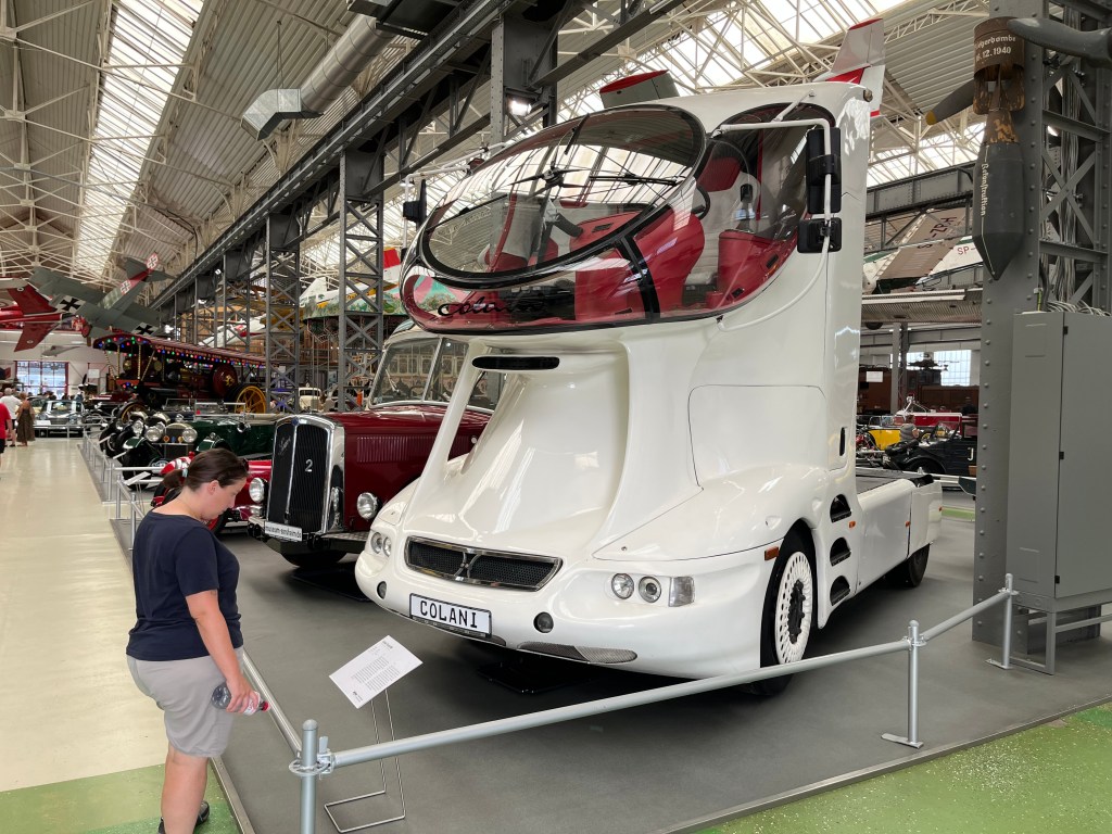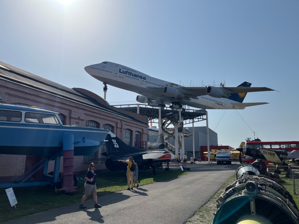 Dem ersten Eindruck beim Abbiegen auf den Parkplatz nach zu urteilen – Sieht ganz vielversprechend aus. Flugzeuge, Hubschrauber, Boote, Lokomotiven. Na servas, das kann ja wieder heiter und vor allem zeitaufwändig werden.