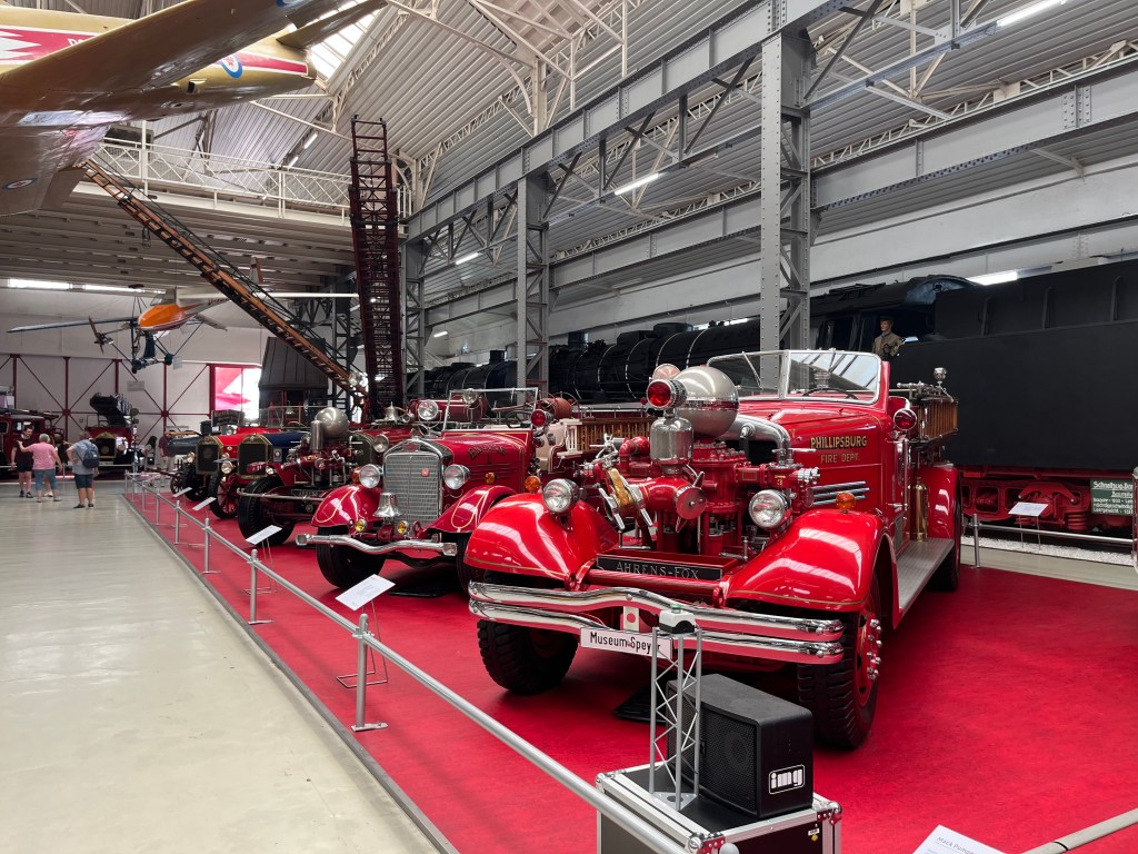 In der ersten Halle findet sich eine wilde Mischung aus diversen Oldtimern gängiger Marken – alleine drei 300SL, ein BMW 507 und noch ein Miura – Spielorgeln, einem doppelstöckigen Karussell und eine Feuerwehr-Ausstellung. Wobei die leider recht US-lastig ist. Spektakulär, aber man hat halt wenig Bezug zu Löschfahrzeugen aus Pittsburg oder NewYork.
