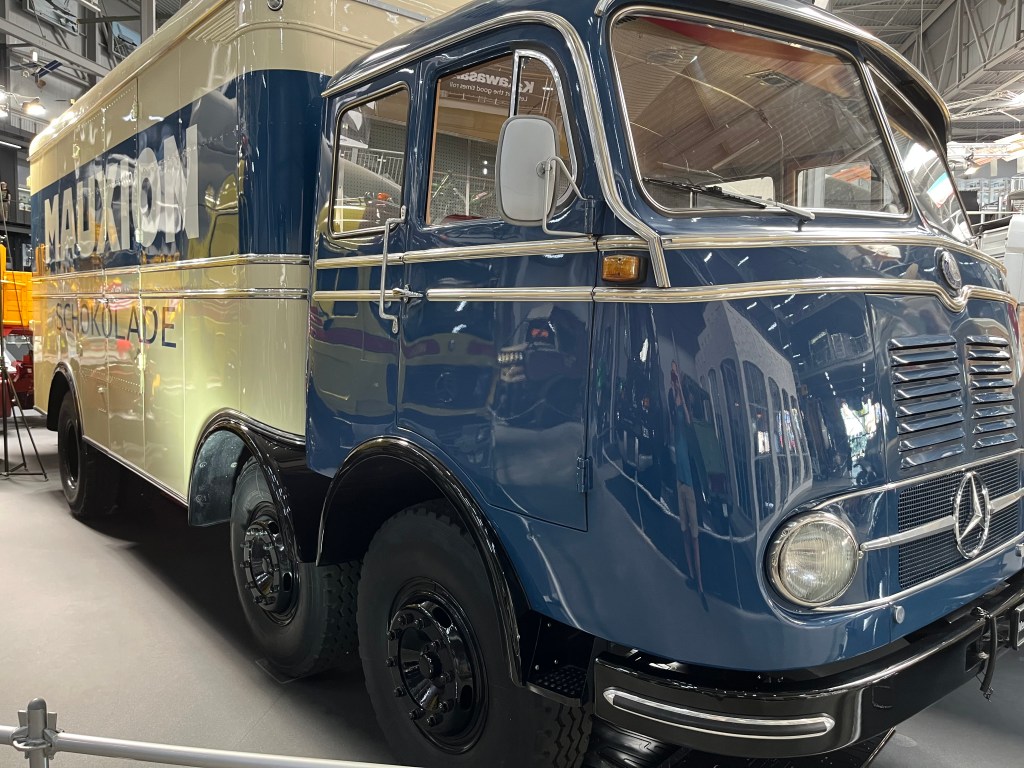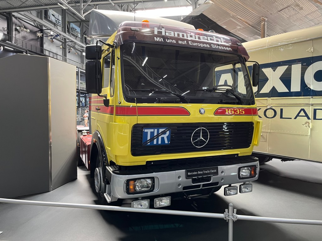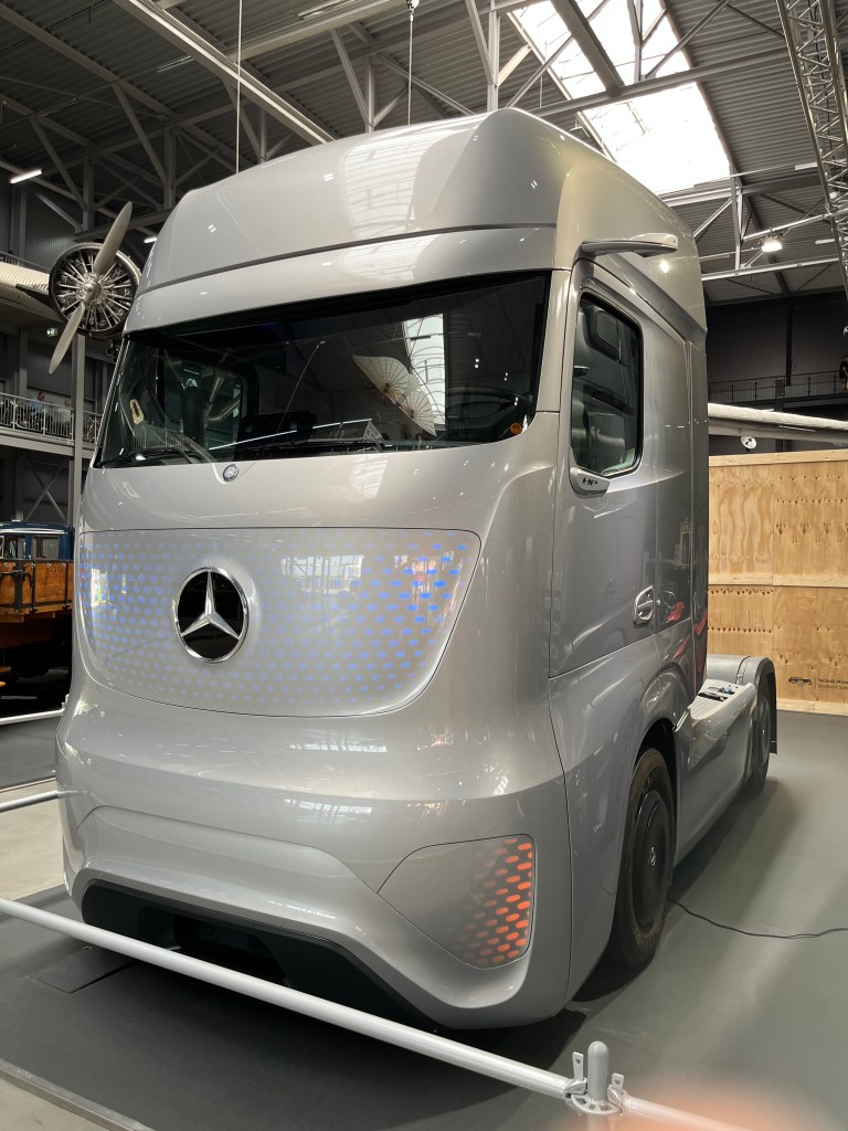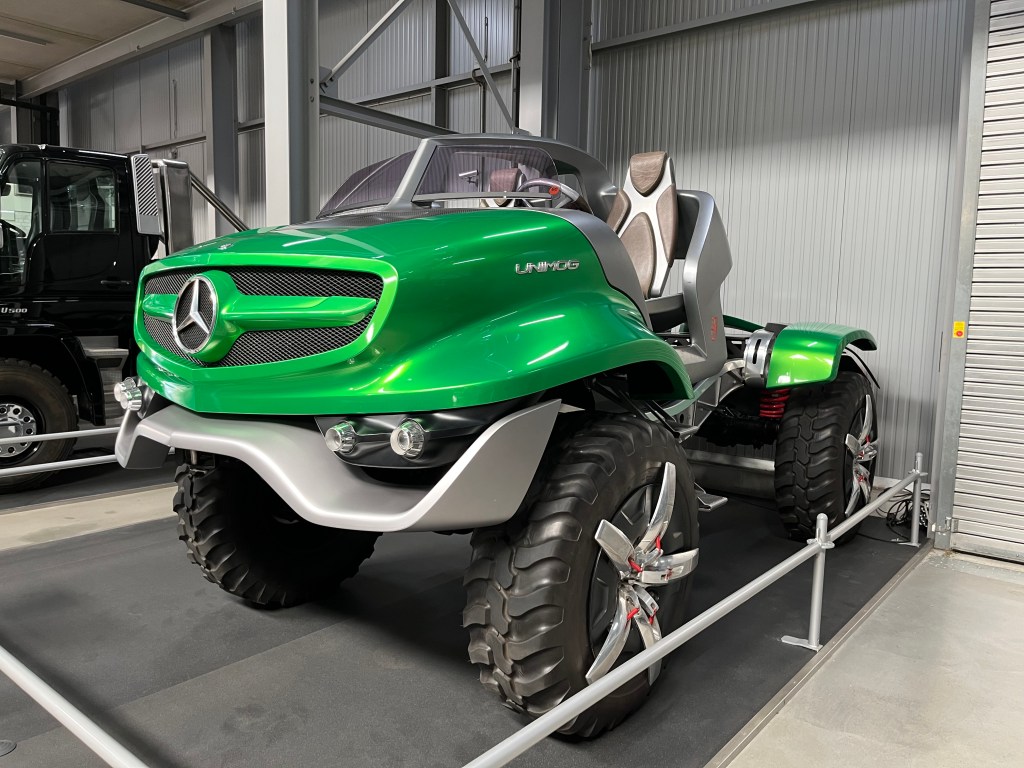 Was die Mercedes-Benz-LKWs aus diversen Epochen neben dem Spacigen machen? Nicht hinterfragen, genießen.