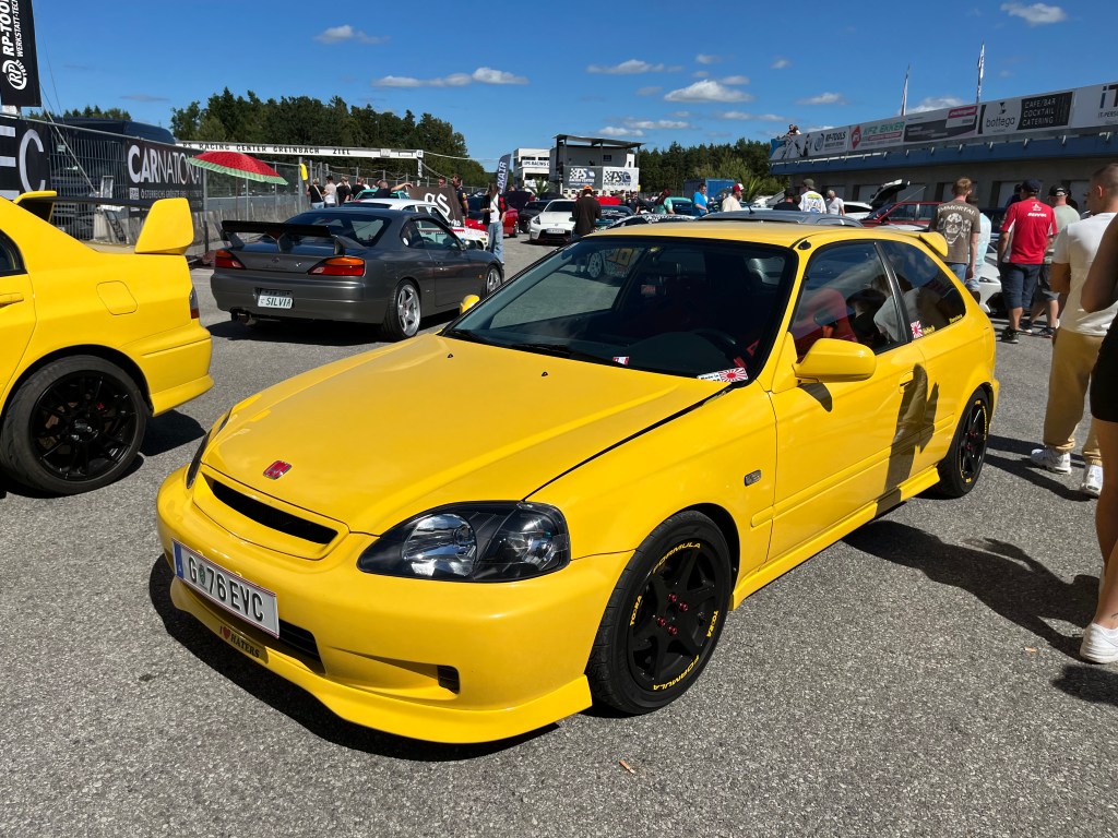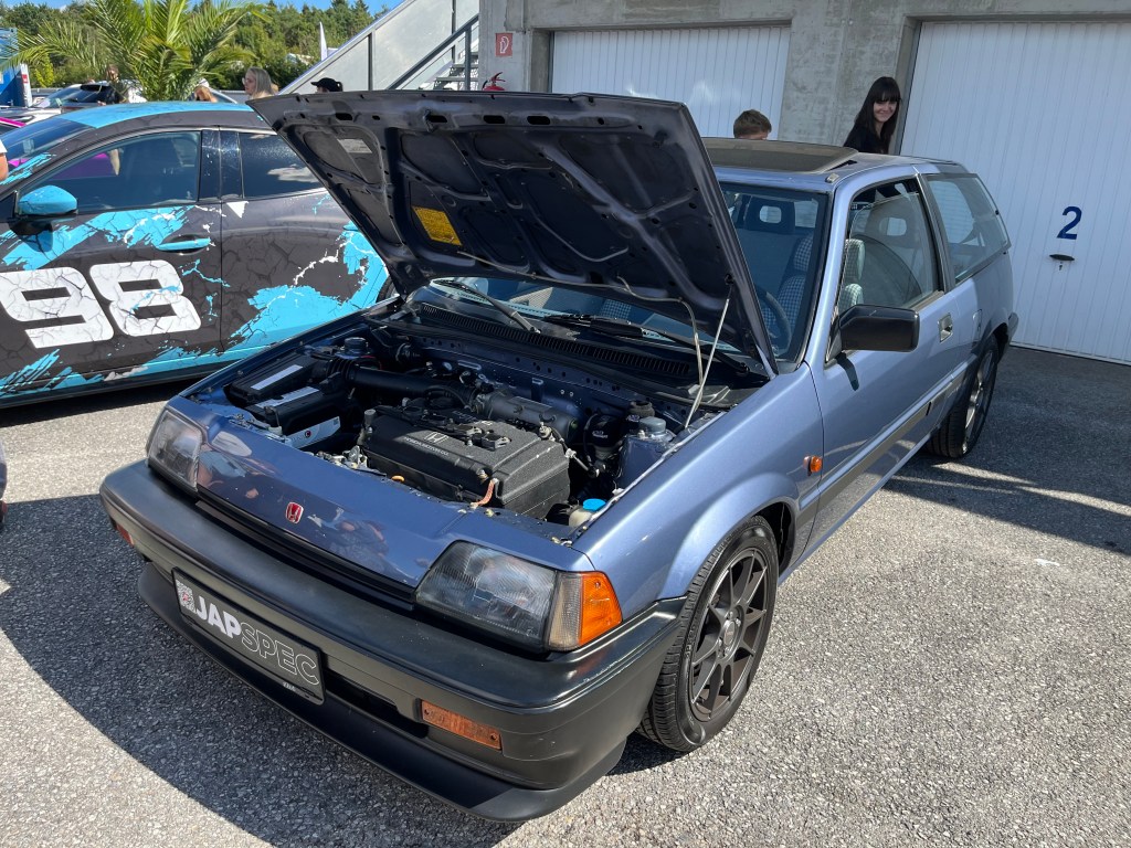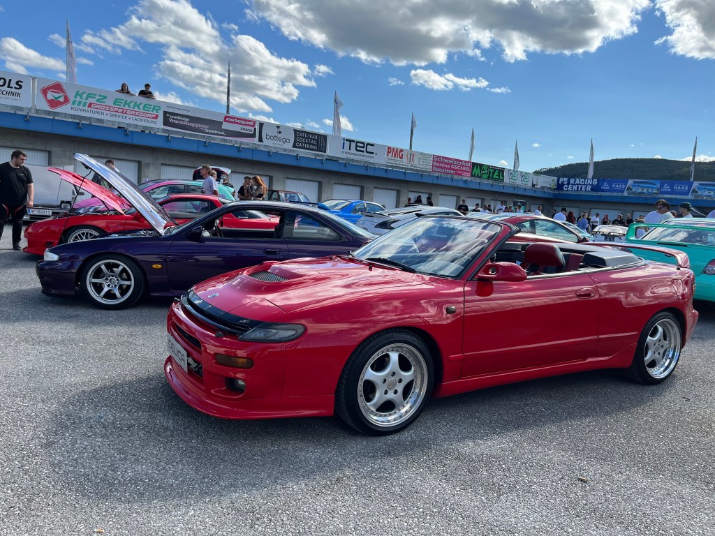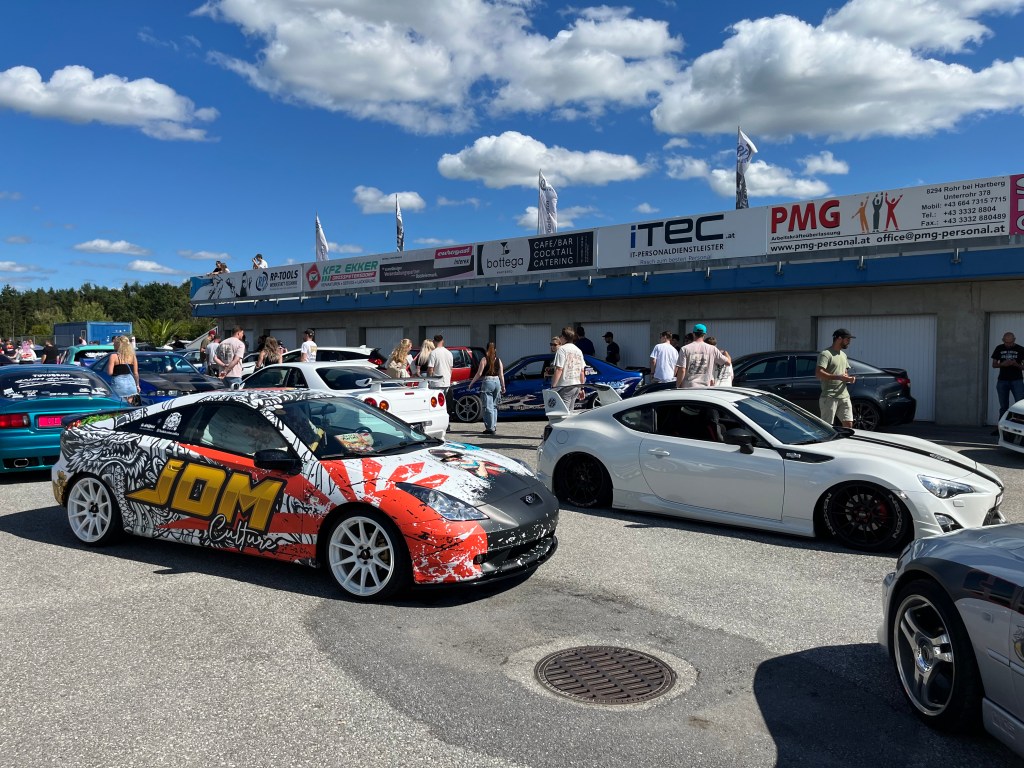 Um ein Zwischenfazit vorweg zu nehmen – Hier wird schon ordentlich was geboten. Auch dann, wenn man nicht aktiv auf der Rennstrecke fahren möchte. Ein VIP-Bereich, Parkplatz-Einweiser mit Motivation und Sinn für homogene Reihen („Lass uns eine Supra-Reihe machen!“), Gastro, Merchandising, alles da. Natürlich alles relativ teuer, aber alleine die Vielfalt und die schiere Maße an Teilnehmer-Fahrzeugen rechtfertigt hier den Eintritt. Bei einer anderen Veranstaltung, auf der einem erst die Einfahrt ermöglicht wird, wenn man eine „freiwillige“ Spende in die Box geworfen hat, sehe ich das wiederum gar nicht ein. Anyway, bleiben wir beim JapSpec25: