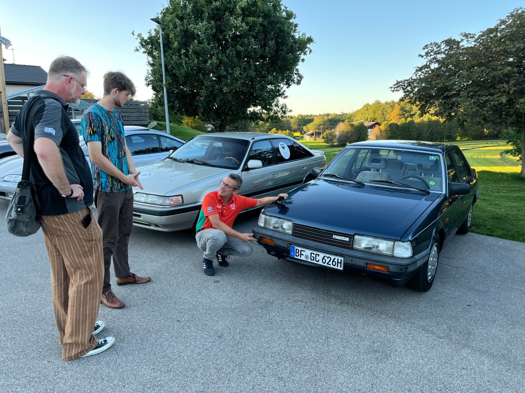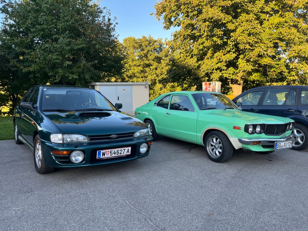 Von dort ist es nur noch ein Katzensprung zum Abendessen in Bayern, wo das Hallo noch einmal genauso groß ist wie der Hunger. Und welch Überraschung – Ein sehr originaler Impreza GT lockert die Mazda-Gruppe etwas auf.