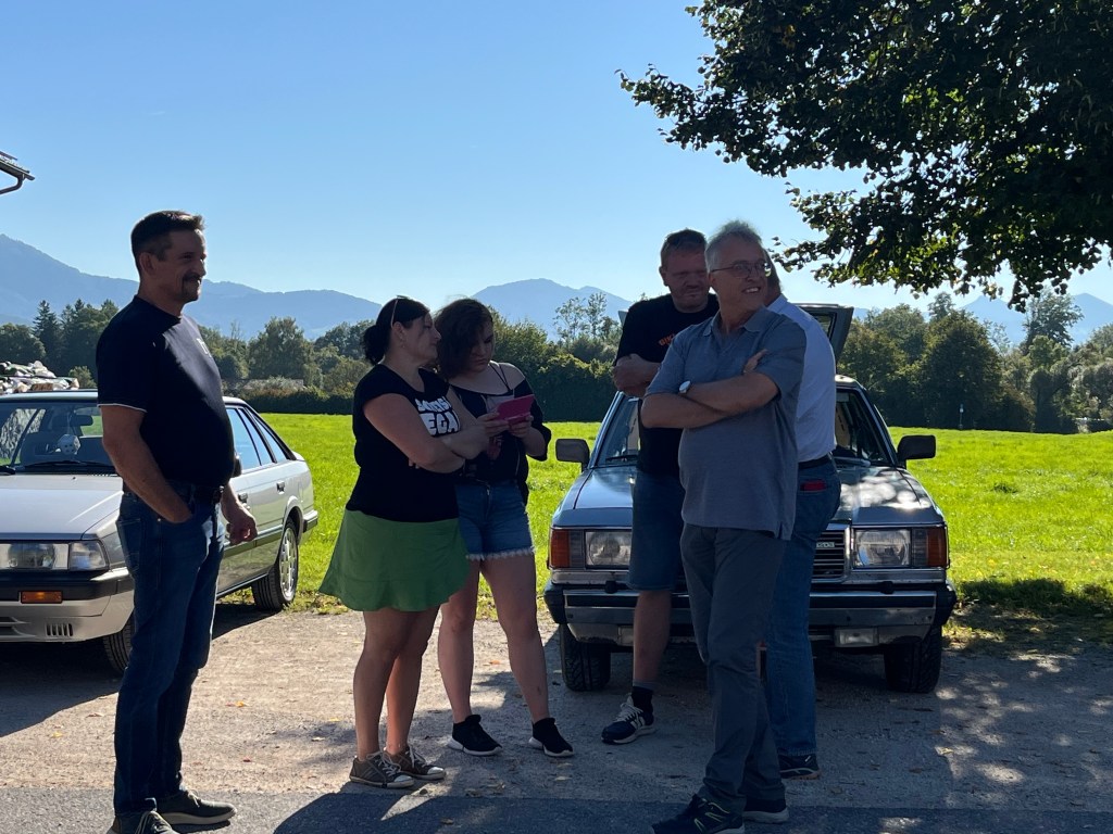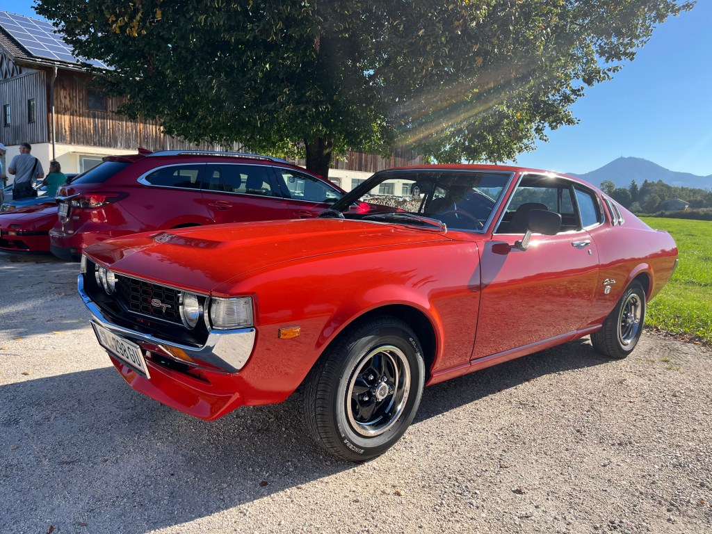Am Samstag dann der große Tag. Die ganztägige Roadbook-Tour, dieses Jahr über Umwege zum Waginger See, steht auf dem Programm. Erst eine Fahrerbesprechung nach dem ausgiebigen Frühstück, dann gehts im Konvoi auf die Strecke. Und eine wunderschöne 1975er Toyota Celica sorgt für weitere Auflockerung.