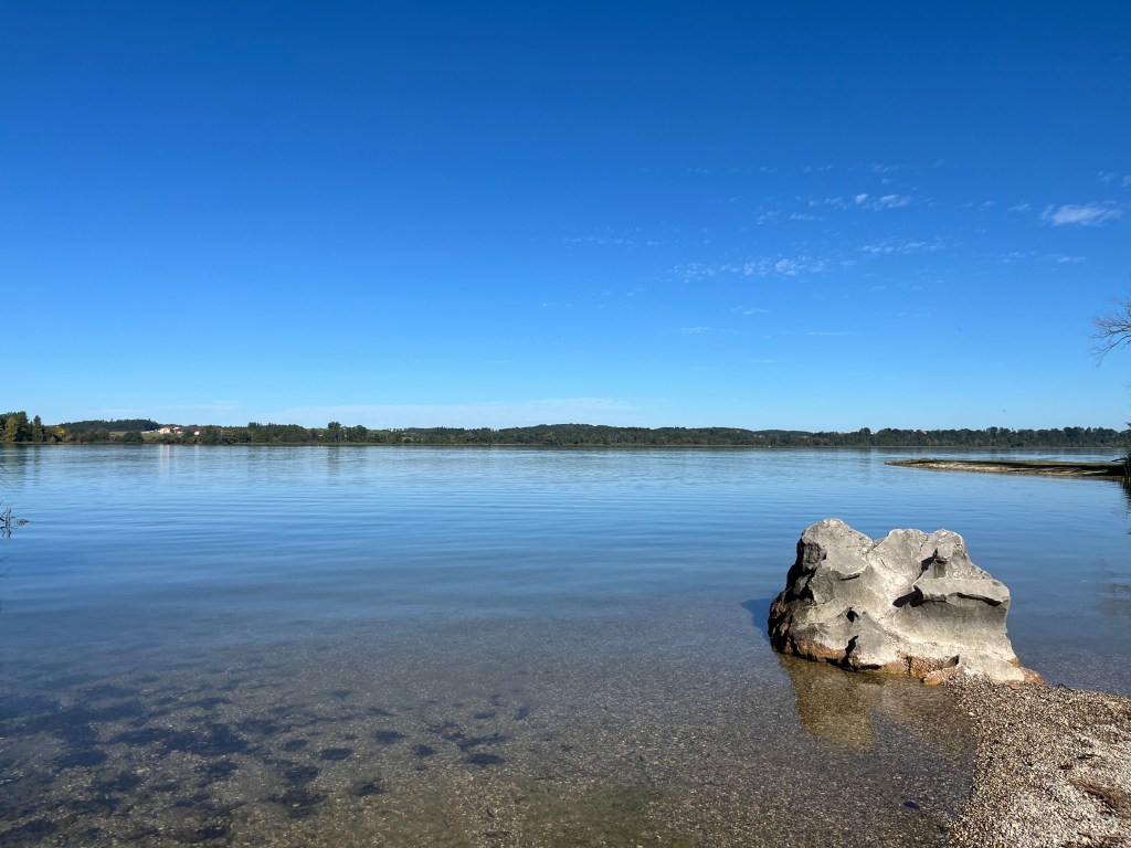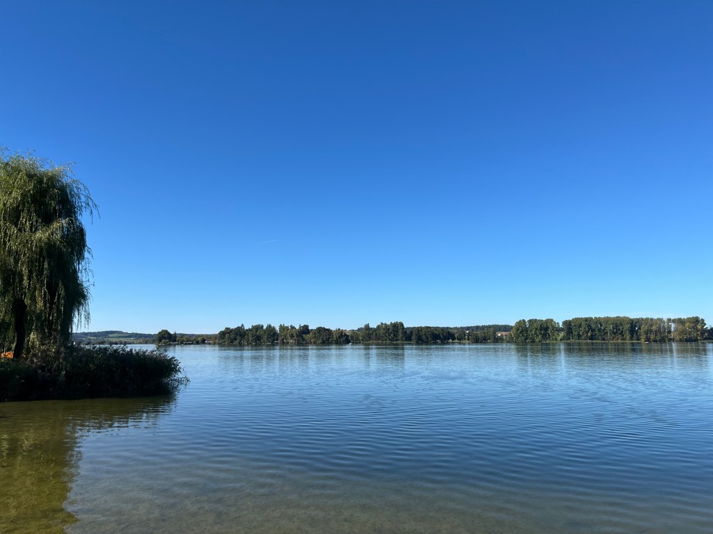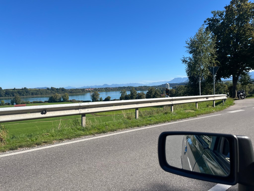 Weil das reichhaltige Frühstück ja erst 2 1/2 Stunden zurückliegt, können wir die Mittagspause in der Nähe von Burghausen natürlich kaum noch erwarten. Und dann gehts endlich zum Highlight des Tages. Schön ist er, der Waginger See. Quasi wie der Chiemsee, nur völkstümlicher.